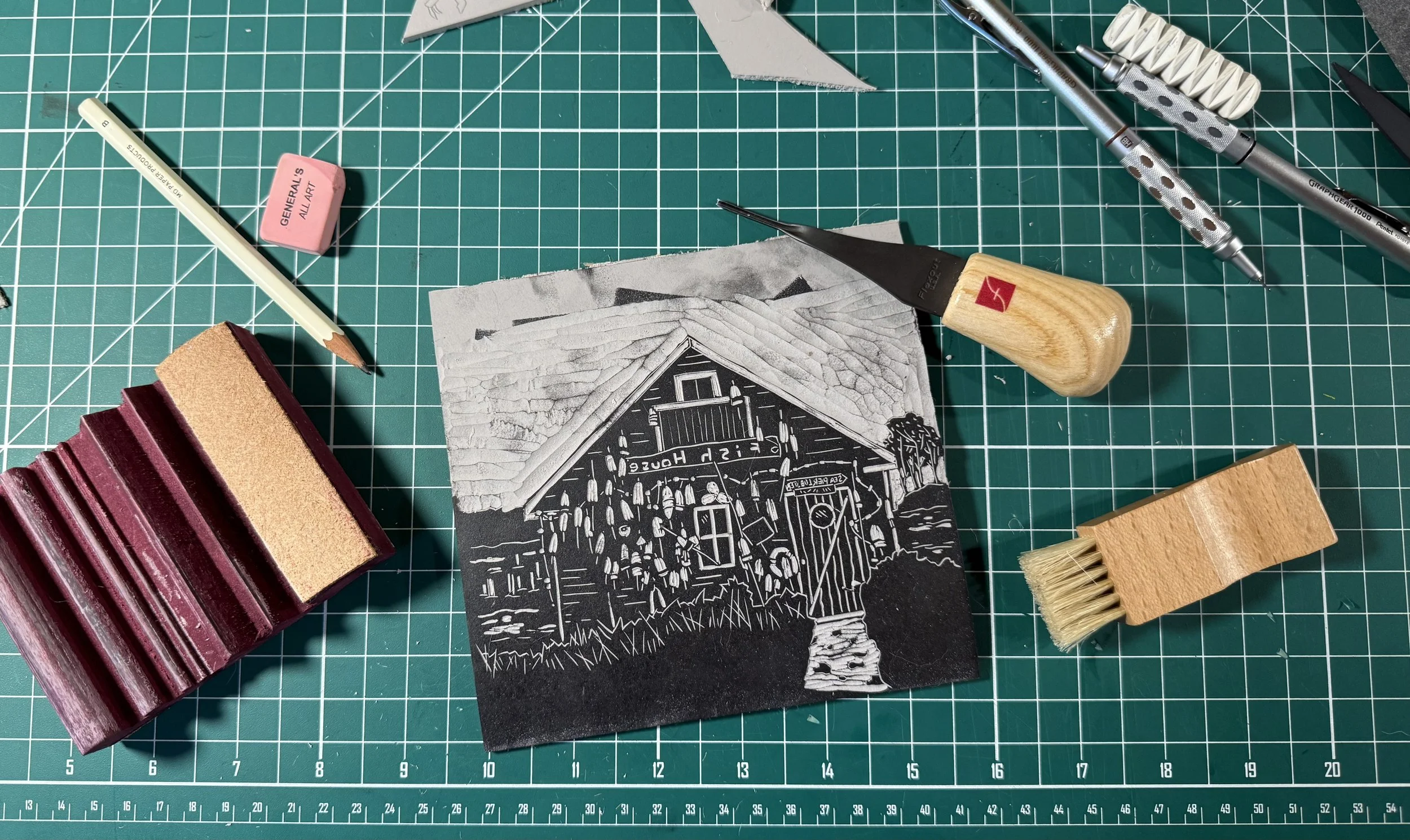 Founded in 2022, Rowdy Titmouse Studio is a letterpress and linoleum studio creating art prints, greeting cards, public service announcements, quirky quips, and custom works.